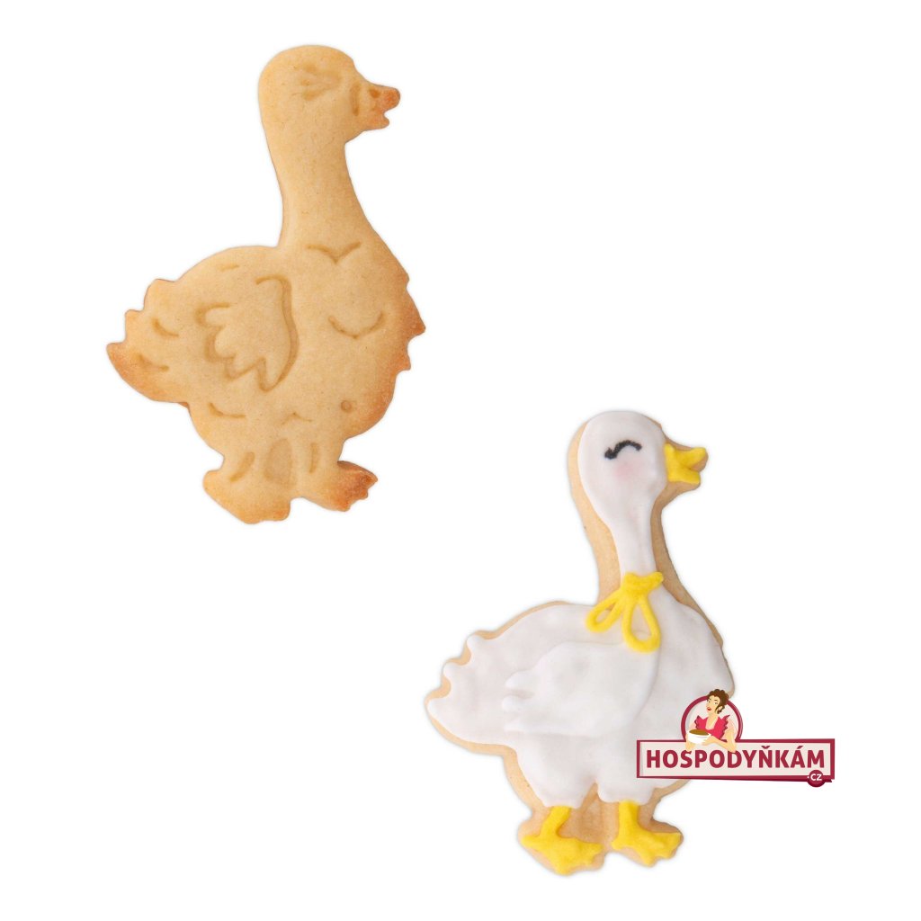 Použití vypichovače je snadné a efektivní. Stačí vyválet těsto, marcipán nebo jinou cukrářskou hmotu na plát o tloušťce zhruba 0,5 cm. Poté vypichovač zatlačíte do plátu a vykrojíte tvar husy. Jedním stiskem pístu vtisknete reliéf a snadno vyjmete hotový tvar, který je připraven k dalšímu zdobení.