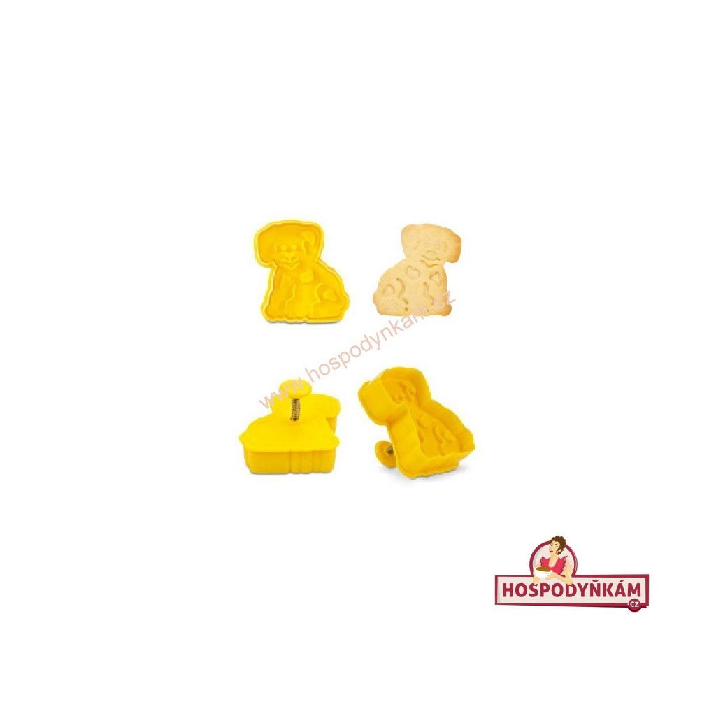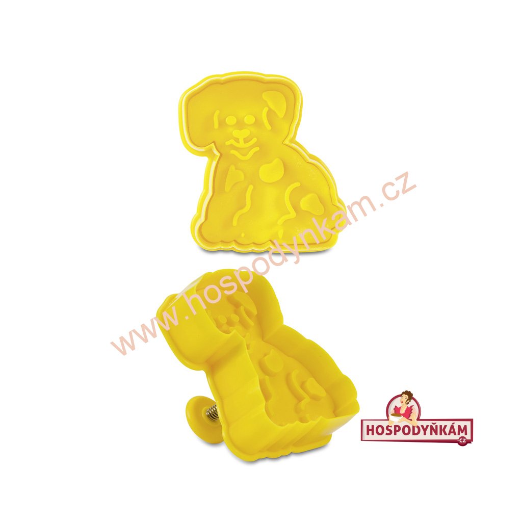 Plastový vypichovač na marcipán s pístem ve tvaru pejska je vhodný k vytlačení vzoru do marcipánu, či těsta.