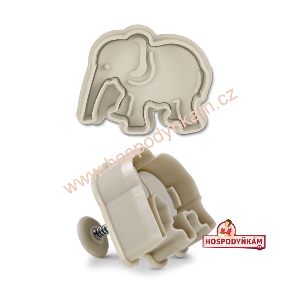 Plastový vypichovač na marcipán s pístem ve tvaru slona ke vhodný jak k vytlačování vzoru do marcipánu, tak do těsta. Výsledný vzor pak můžeme mít jako marcipánovou ozdobu na dortu, či jako upečenou sušenku.