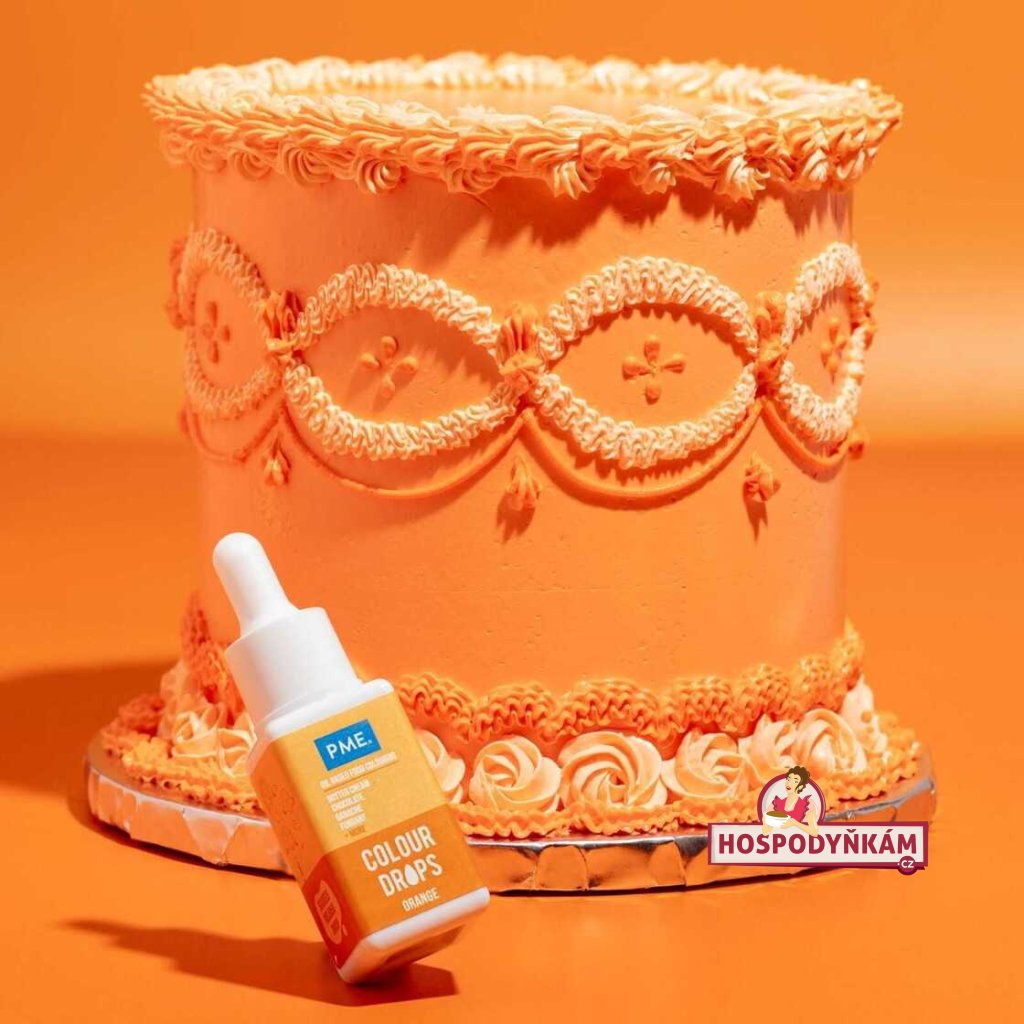 Pro dokonale teplý a výrazný tón Vašich dortů a dezertů vyzkoušejte oranžovou barvou PME Colour Drops, se kterou snadno dosáhnete sytého a rovnoměrného zabarvení čokolády, máslových krémů, fondánu i ganáží. Praktické kapátko umožňuje přesné dávkování, takže si sami zvolíte intenzitu odstínu podle potřeby. Barva je odolná vůči blednutí a zajistí vašim dezertům profesionální vzhled beze šmouh.