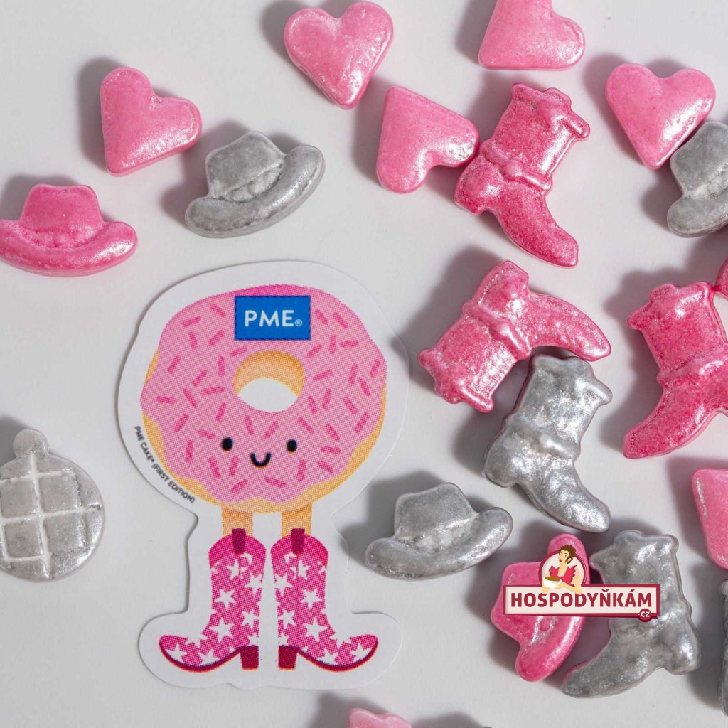 Stylový a originální vzhled pro vaše sladké výtvory přináší cukrové zdobením PME Disco Cowgirl! Balení obsahuje tvarované dekorace ve tvaru dívčích kovbojských bot, klobouků, disko koulí a srdíček. Vše je laděno do světlých a tmavých odstínů růžové a stříbrné barvy, což z tohoto zdobení dělá ideální volbu pro dívčí narozeninové dorty, cupcakes, dezerty nebo zmrzlinové poháry.