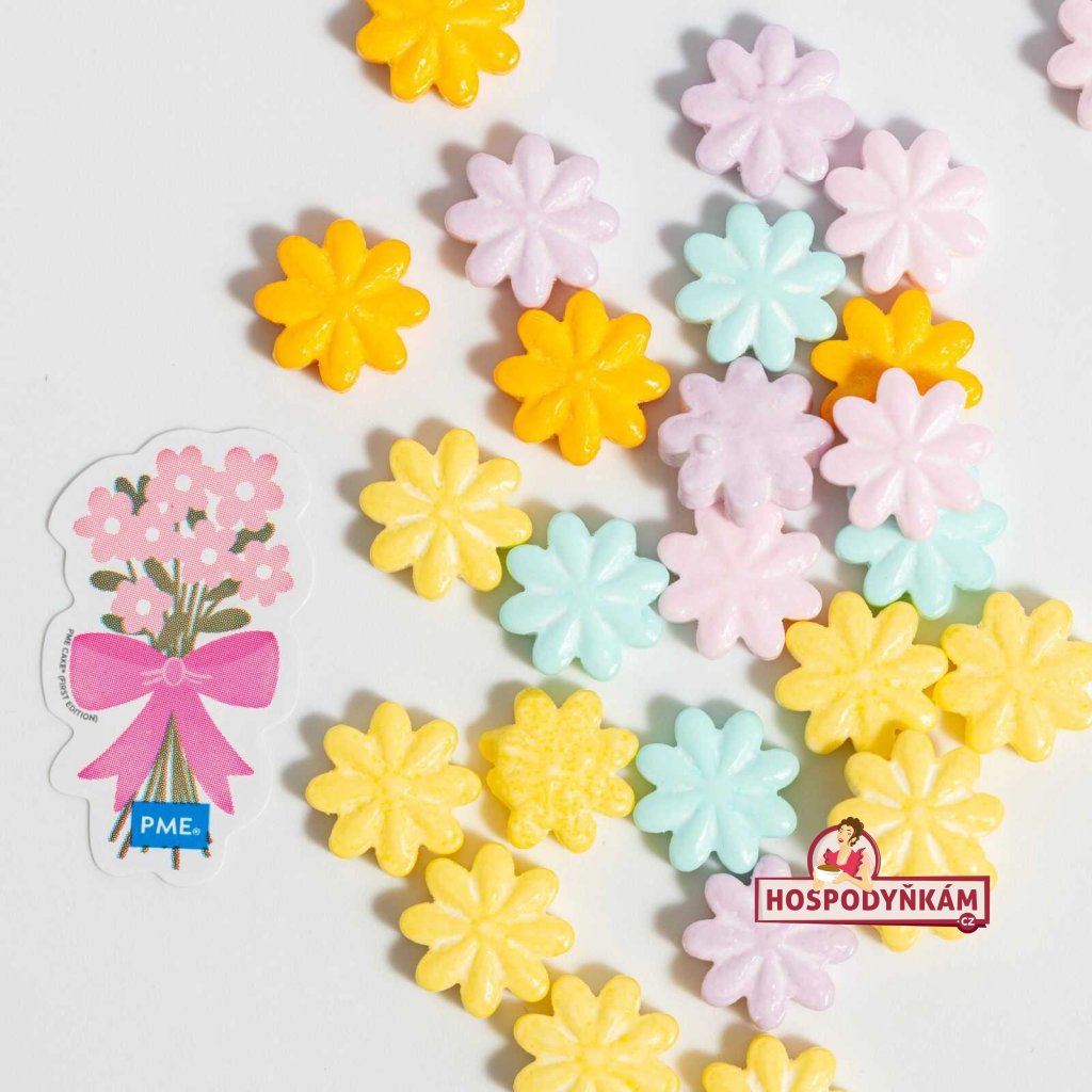 Cukrářská zdobící sada obsahuje dekorace ve tvaru kvítků v krásných pastelových odstínech: žluté, oranžové, růžové, fialové a modré. Díky své univerzálnosti a decentním barvám jsou tyto kytičky ideální pro zdobení všech druhů cukrářských výrobků – dortů, cupcakes, sušenek, dezertů i zmrzlinových pohárů.