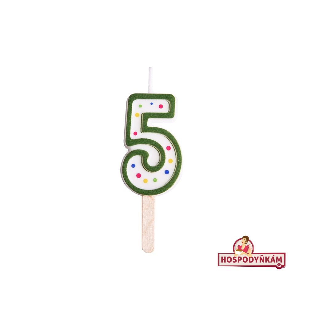 Malá svíčka na dort ve tvaru číslice 5 je vhodná pro dozdobení narozeninových dortů.