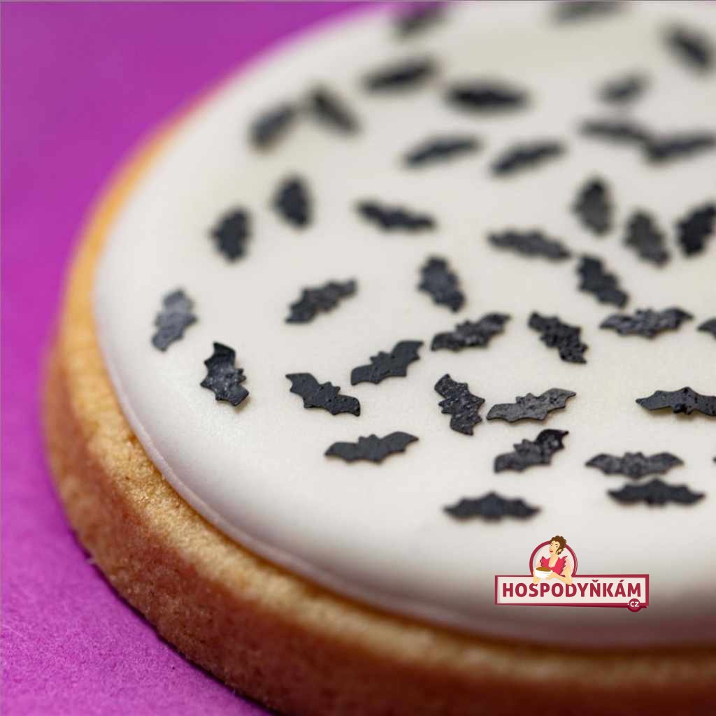 Svým dezertům dodáte originální a hravý vzhled s mini lesklými konfetami ve tvaru černých netopýrů od PME. Toto tenké zdobení je ideální pro rychlou a efektní dekoraci zmrzliny, donutů, cupcakes, sušenek i dalších sladkostí – stačí posypat a během pár vteřin vytvoříte jedinečnou atmosféru například na halloweenské party nebo tematickou oslavu. Konfety jsou 100% jedlé, neobsahují AZO barviva a díky svému tvaru zaujmou malé i velké mlsouny.