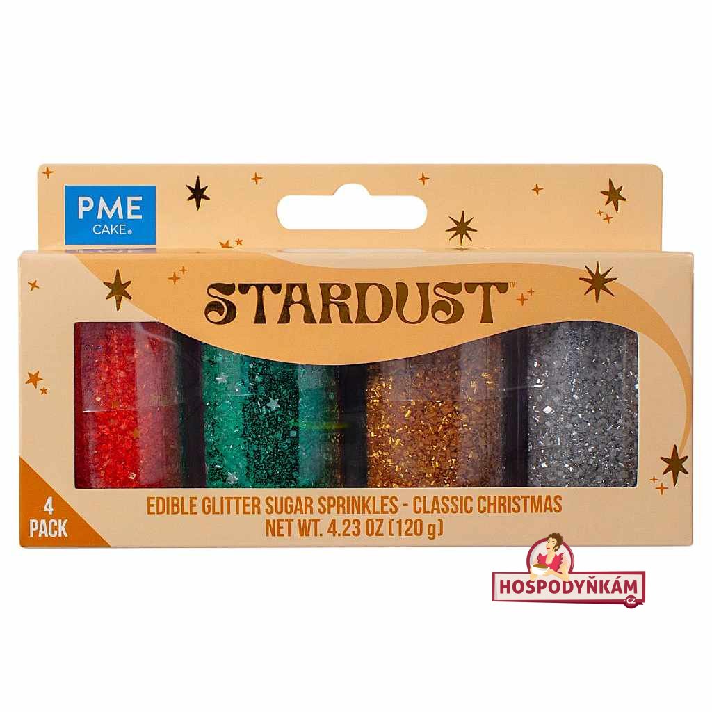 Čtyřdílná sada jedlých třpytivých cukrových posypek v červené, zelené, stříbrné a zlaté barvě je speciálně navržena pro vánoční zdobení. V každé lahvičce najdete drobné krystalky a mini hvězdičky s vysokým leskem, které dodají vašemu pečivu špetku vánoční magie. Skvěle se hodí na zmrzlinu, koblihy, dezerty, muffiny, sušenky a další sladkosti. Zdobení je rychlé a snadné – stačí nasypat podle libosti!