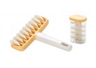 Rádýlko na těsto je ideální pomůckou při krájení těsta. Umožňuje rychlé a přesné vykrajování stejných tvarů, což je zvláště užitečné při přípravě receptů, kde je důležitá konzistence a rovnoměrnost. Díky rádýlku můžete snadno a rychle vytvářet kostičky, kolečka, pásky a mnoho dalších tvarů.