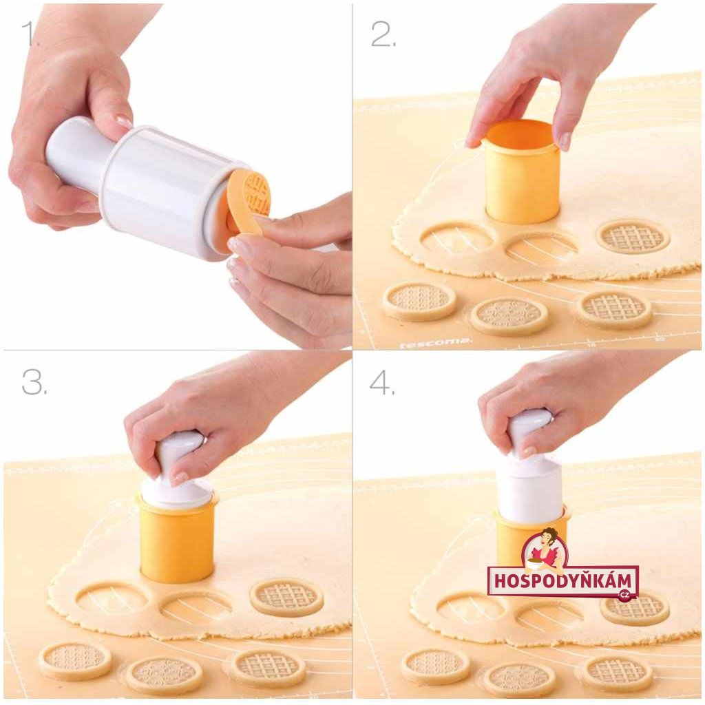 Použití raznice je velmi jednoduché. Stačí vybrat ornament, nasadit silikonovou raznici na razítko, vložit do vykrajovátka a zatlačit – sušenka je vykrojená i ozdobená během vteřiny. V jedné várce můžete snadno kombinovat různé vzory a vytvořit tak originální mix, který potěší nejen děti, ale i dospělé. Praktické je i to, že všechny části raznice můžete po pečení jednoduše umýt v myčce, takže úklid je otázkou chvilky.