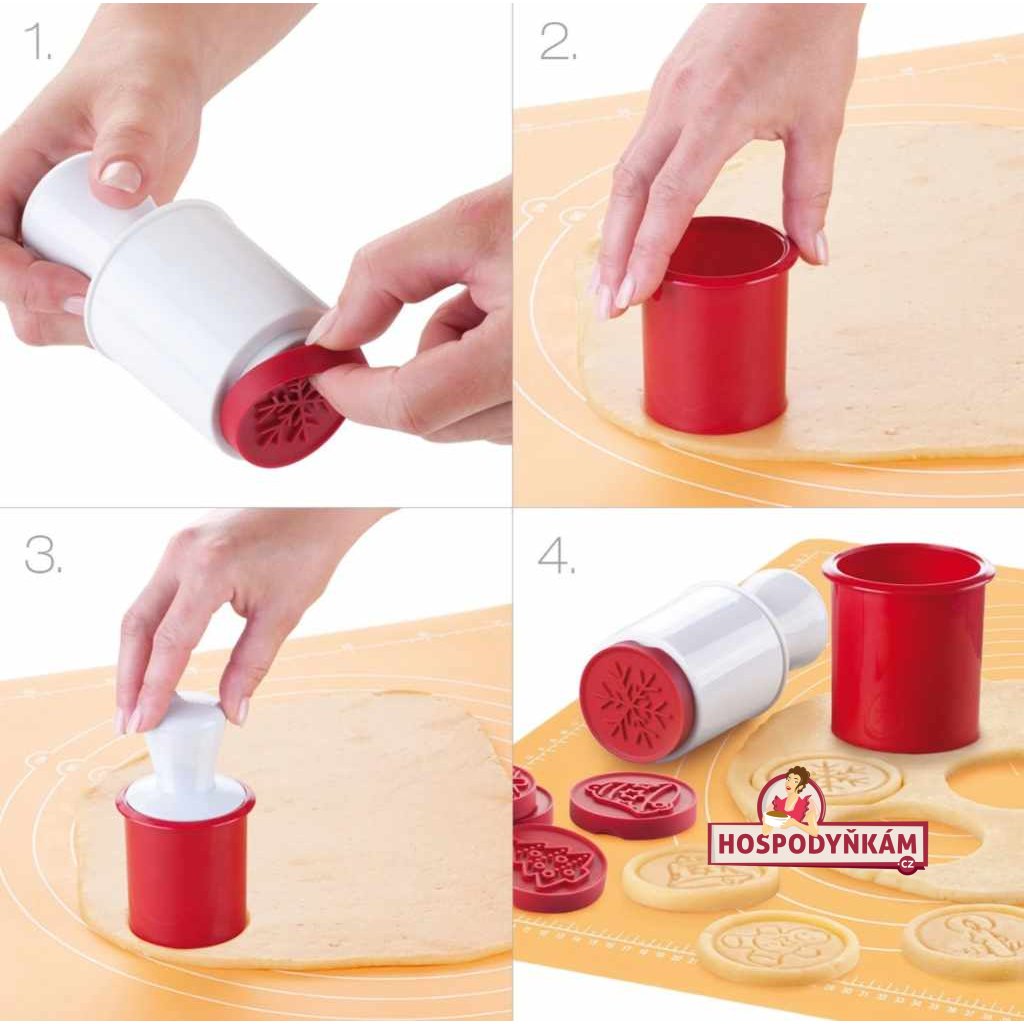Raznice na sušenky s vánočními motivy vám usnadní přípravu domácího cukroví a zároveň dodá vašemu pečení originální vzhled. Stačí si vybrat jeden ze šesti vánočních motivů, nasadit silikonovou raznici na razítko, vložit do vykrajovátka a během vteřiny máte na plechu krásně vytvarovanou a ozdobenou sušenku. Motivy můžete libovolně měnit, takže i z jedné várky vytvoříte pestrý mix, který udělá radost celé rodině. Po pečení všechny části jednoduše umyjete v myčce a máte hotovo bez zbytečné námahy.