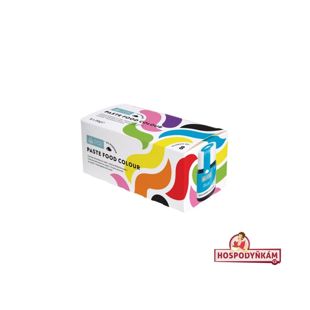 Sada vysoce kvalitních značkových jedlých gelových barev od anglické firmy Squires Kitchen je určena k barvení všech potravin. Velkou výhodou těchto barev je fakt, že neobsahuji glycerol, proto rychle zasychají, čímže se báječně hodí také k psaní nápisů přímo na potahovací cukrářskou hmotu.