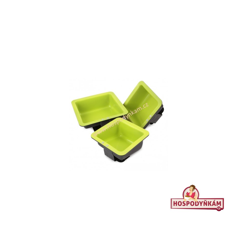 - Rozměry forem: délka stran forem jsou 16, 18 a 22 cm, s hloubkou cca 5,5 a 9,5 cm, což umožňuje vytváření dortů různých velikostí a tvarů.