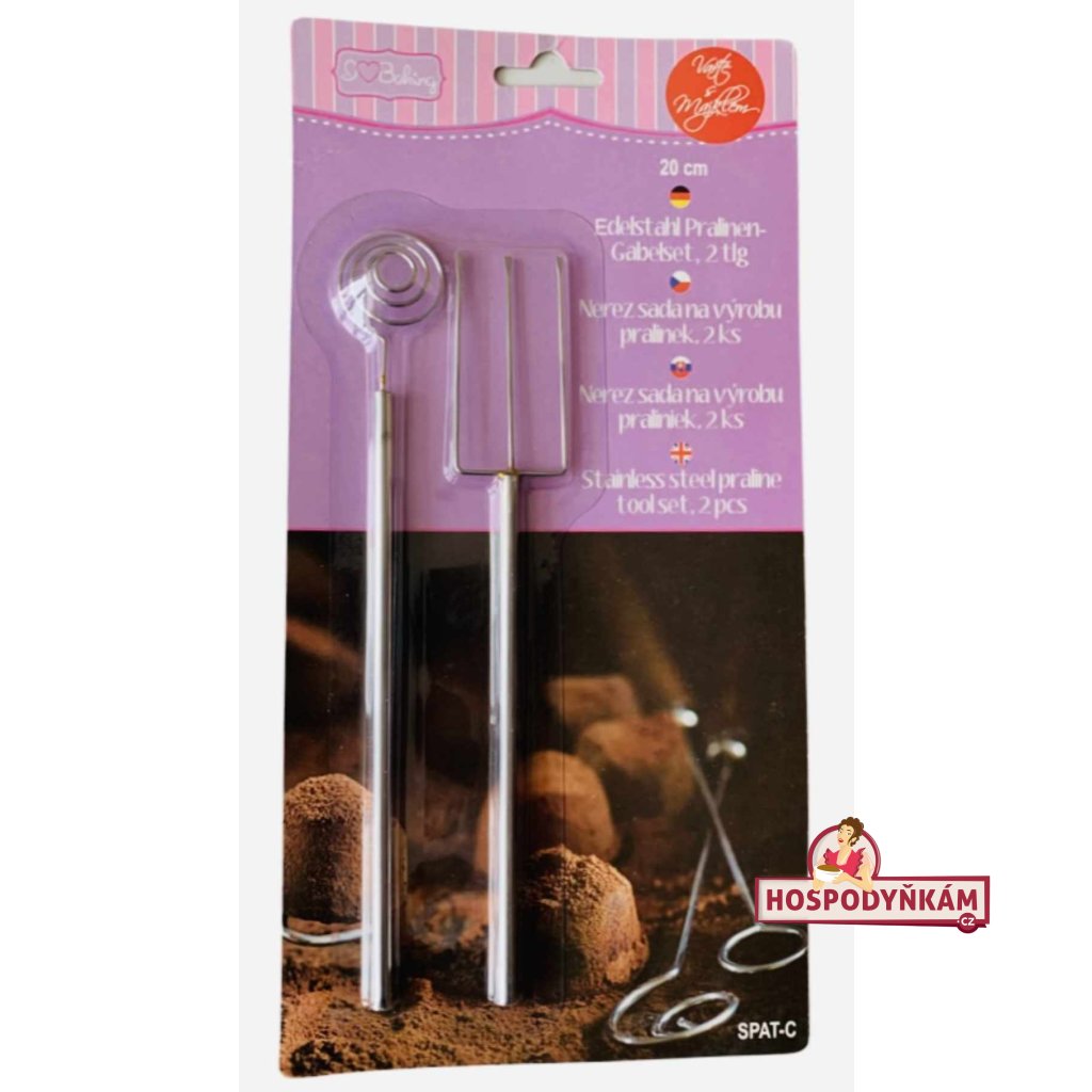 Pokud jste někdy toužili vyzkoušet si výrobu vlastních čokoládových pralinek nebo máčeného ovoce v čokoládě, tato sada je přesně pro vás. Najdete v ní dvě nepostradatelné pomůcky, díky kterým bude příprava pralinek nejen snadná, ale i zábavná. Sada obsahuje nerezovou vidličku a spirálovou naběračku, které vám pomohou vytvořit pralinky jako z cukrárny přímo u vás doma.