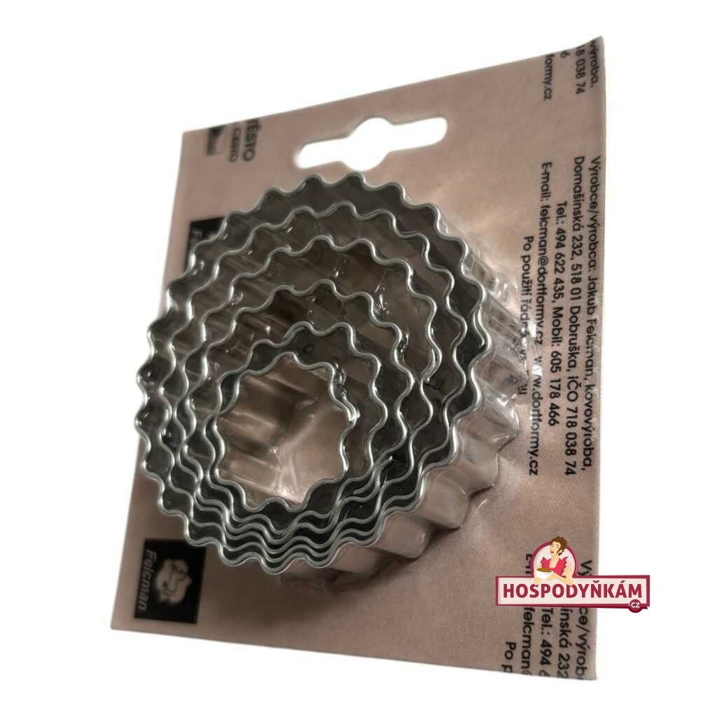 A o co vlastně jde? Tahle sada obsahuje celou škálu koleček různých velikostí, všechny s vroubkovaným okrajem. Jsou vyrobené z pocínovaného plechu, což je klasika, a prostě vám skvěle padnou do ruky.