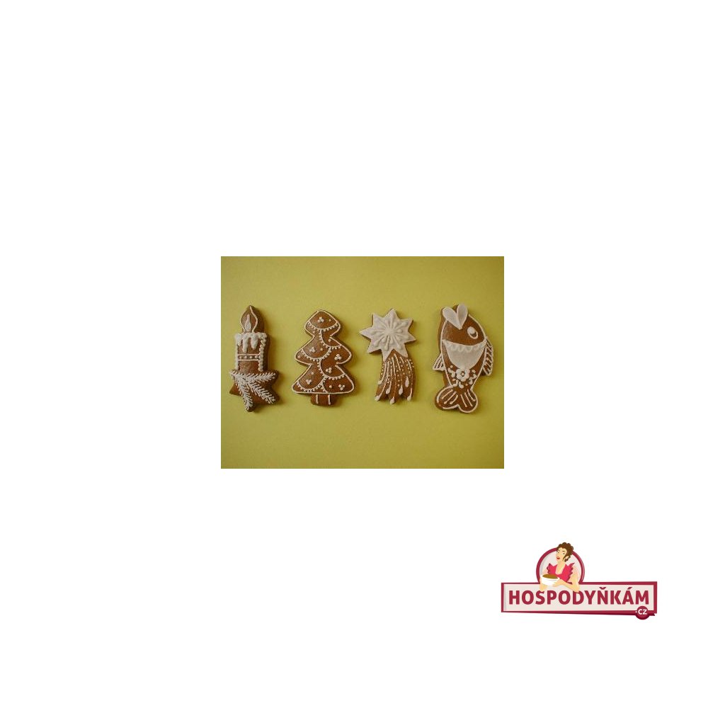 - Čtyři tradiční vánoční tvary: svíčka, ryba, kometa a stromeček