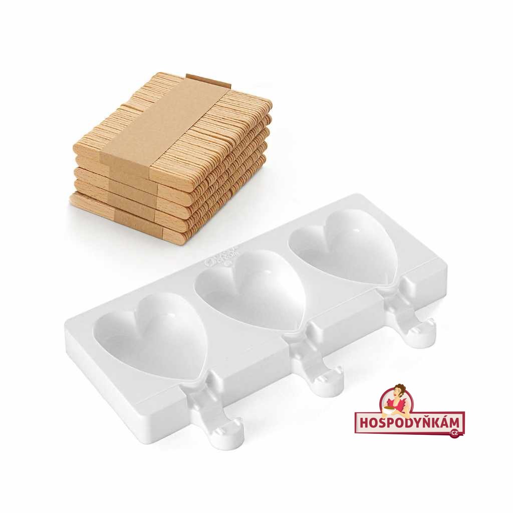 - 1x silikonová forma na 3 mini nanuky ve tvaru srdce