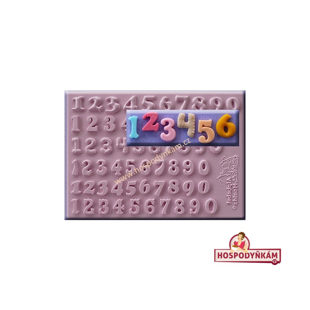Silikonová forma na tvarování číslic z modelovacích hmot. Výška číslic je 1,2 cm.