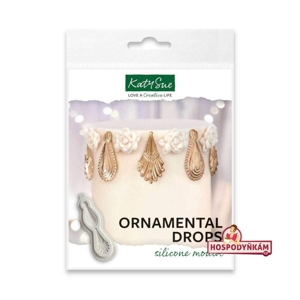 Detailně propracovaná silikonová forma má tvar ozdobných kapek s ornamenty.