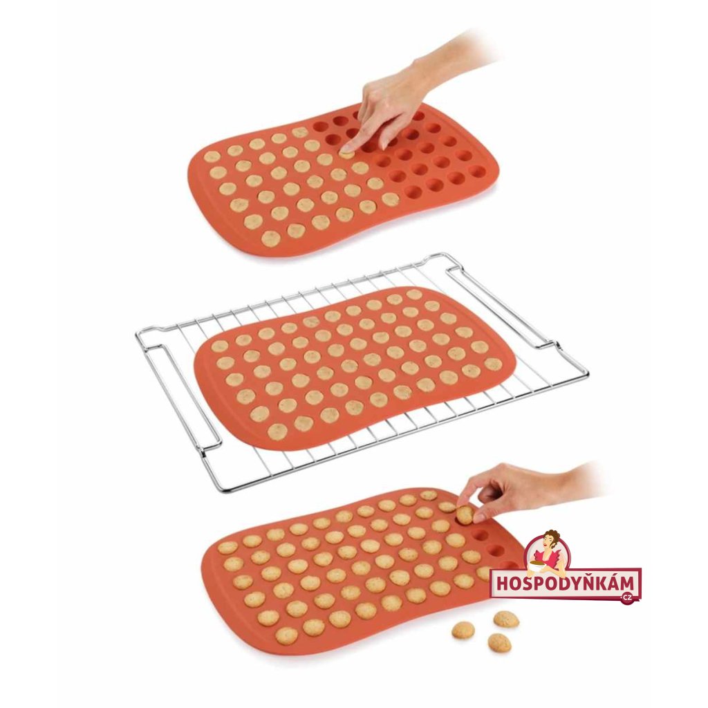 Silikonová forma na oříšky je praktickým pomocníkem pro každého, kdo rád peče. Těsto se v ní nepřipaluje a díky rovnoměrnému rozložení tepla se každý kousek povede na jedničku. Povrch „sametový mat“ je nejen příjemný na dotek, ale hlavně zajistí, že cukroví z formy snadno vyklopíte a zůstane krásně tvarované. Po pečení stačí formu opláchnout nebo vložit do myčky a je opět připravená na další várku dobrot. Skvělou vychytávkou je i možnost formu srolovat – v kuchyňské zásuvce nezabere téměř žádné místo.