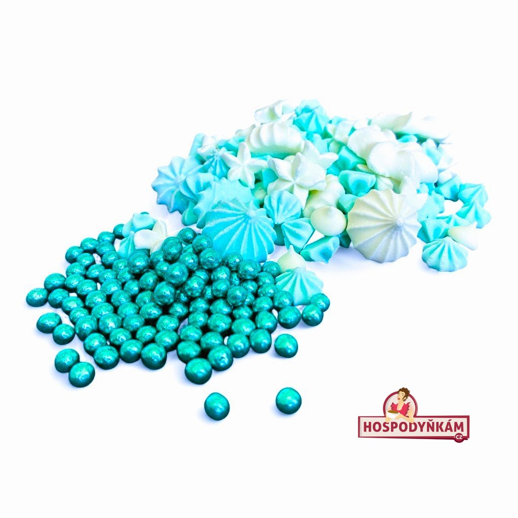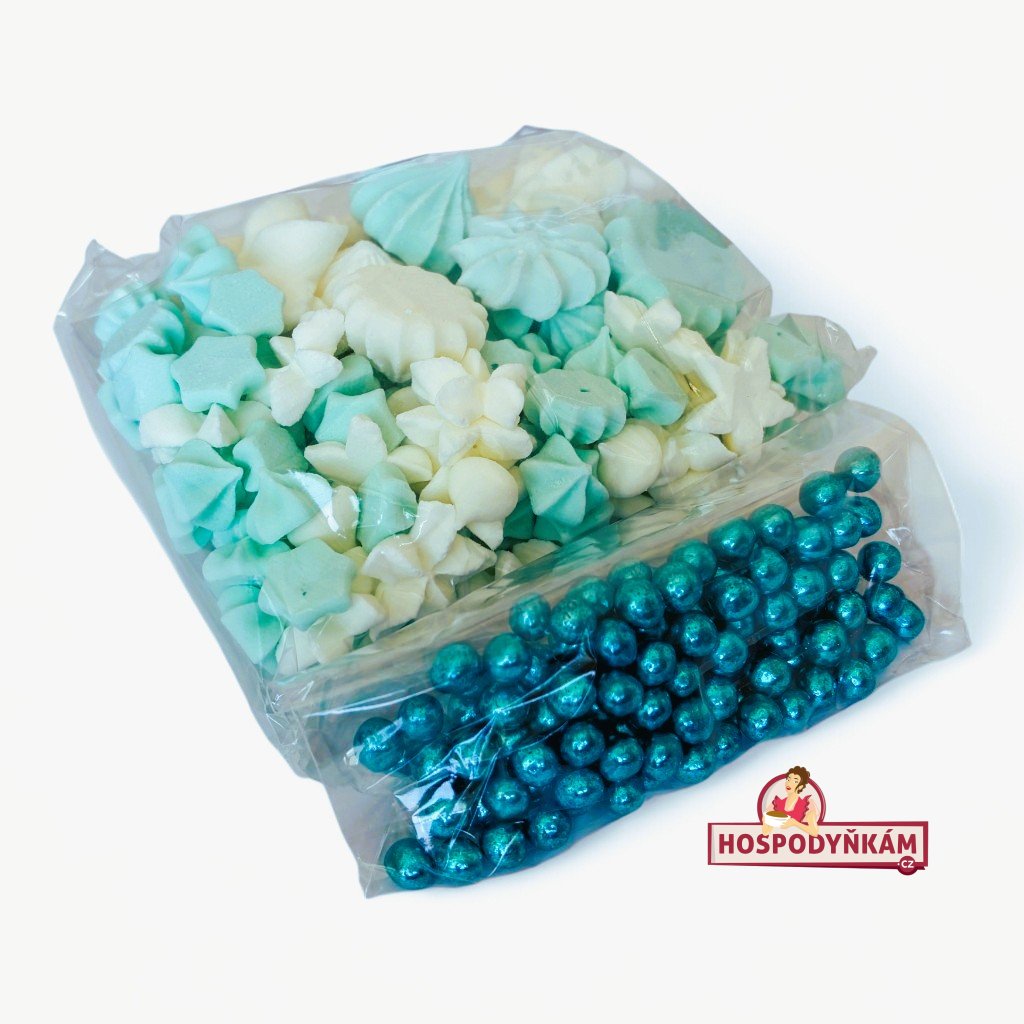 Barevný mix sněhových pusinek a křupavých perliček v modro-bílých tónech je ideální na oslavy narození chlapečka, baby shower nebo odtajnění pohlaví dítěte. V balení najdete 80 g sněhových pusinek v bílé a světle modré barvě různých velikostí (od 1 do 4 cm v průměru) a 20 g modrých křupavých metalických perliček o průměru 7 mm. Mix se hodí na zdobení dortů, cupcakes, dezertů i sladkých stolů.