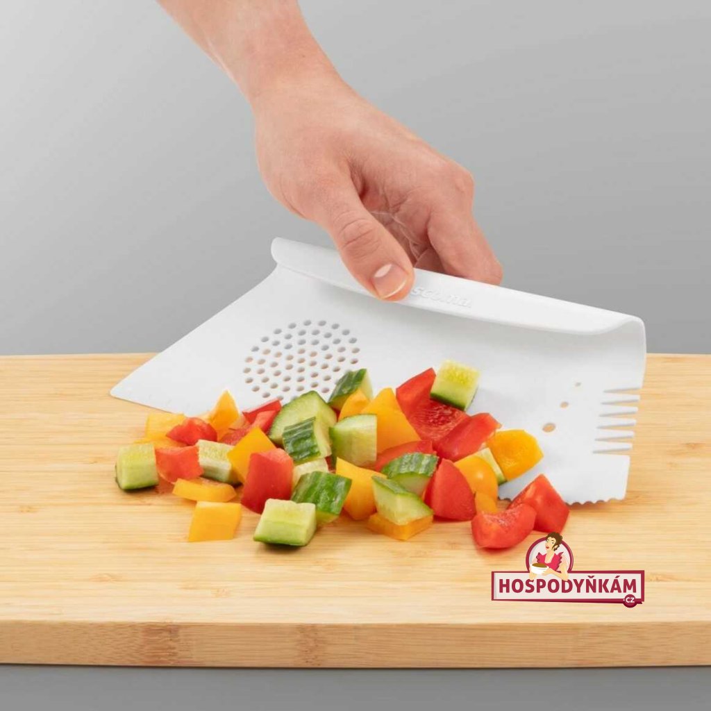 - Lopatka: Ideální pro shrnování, nabírání a přenášení naporcovaných potravin, např. krájené cibule, bylinek apod.