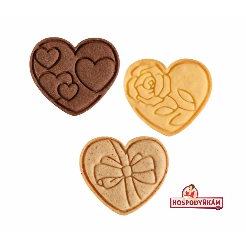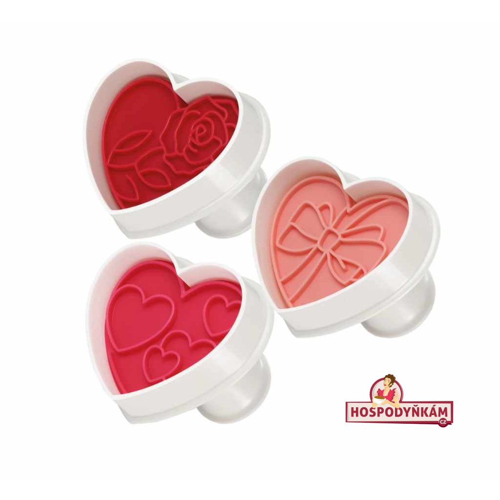 - Sada tří vykrajovátek s razítkem ve tvaru srdíček