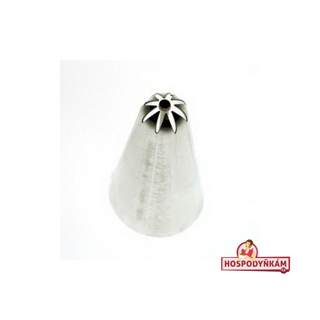 Trezírovací cukrářská špička z pocínovaného potravinářského plechu klopená se středem s osmi zuby o průměru 8mm.