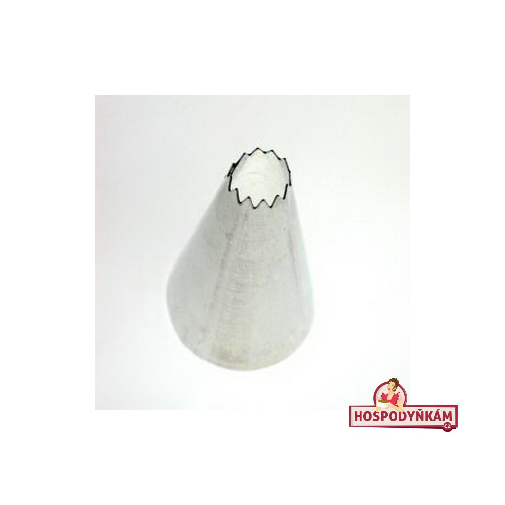 Trezírovací cukrářská špička z pocínovaného potravinářského plechu s dvanácti zuby o průměru 8mm.