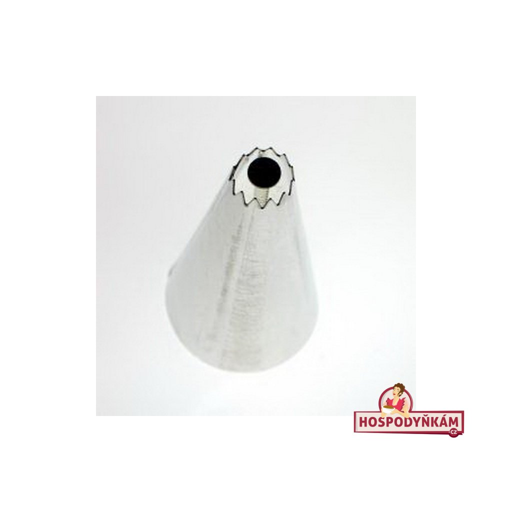 Trezírovací cukrářská špička z pocínovaného potravinářského plechu se středem, s dvanácti zuby o průměru 8mm.