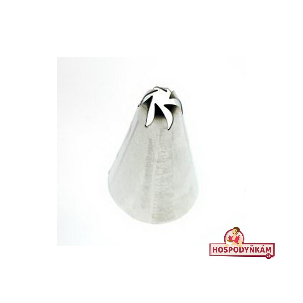 Trezírovací cukrářská špička z pocínovaného potravinářského plechu točená, klopená, se šesti zuby o průměru 8mm.