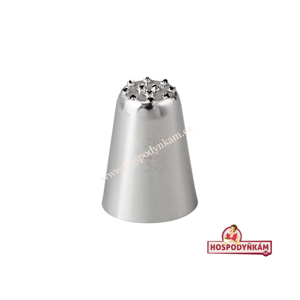 Nerezová zdobící špička. Slouží k vytvoření zvířecí srsti nebo trávy - hmotu, či krém vytlačujeme třinácti otvory o průměru cca 1 mm.